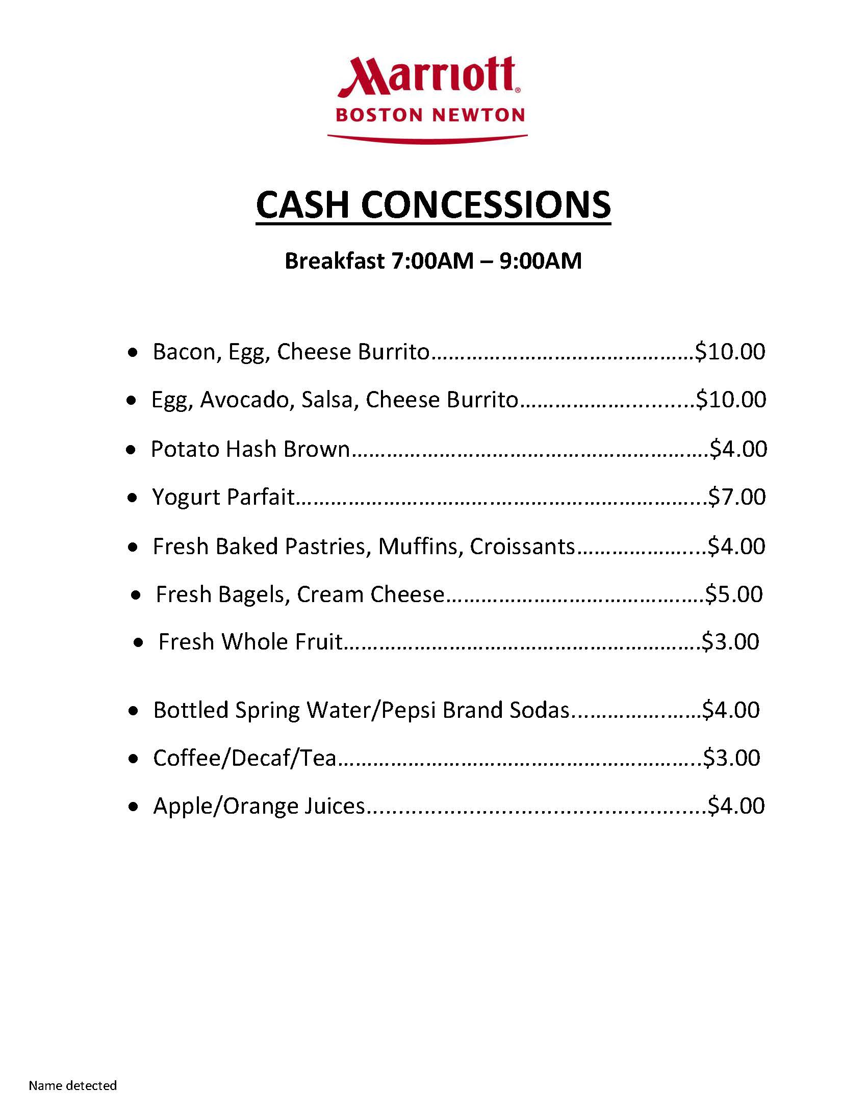 - Grab & Go / A La Carte: With A La Carte, savor quality favorites without the hassle. Dine in the comfort of your guest room or pick up and take on the go by calling from your guest room. See Cash Concessions below: